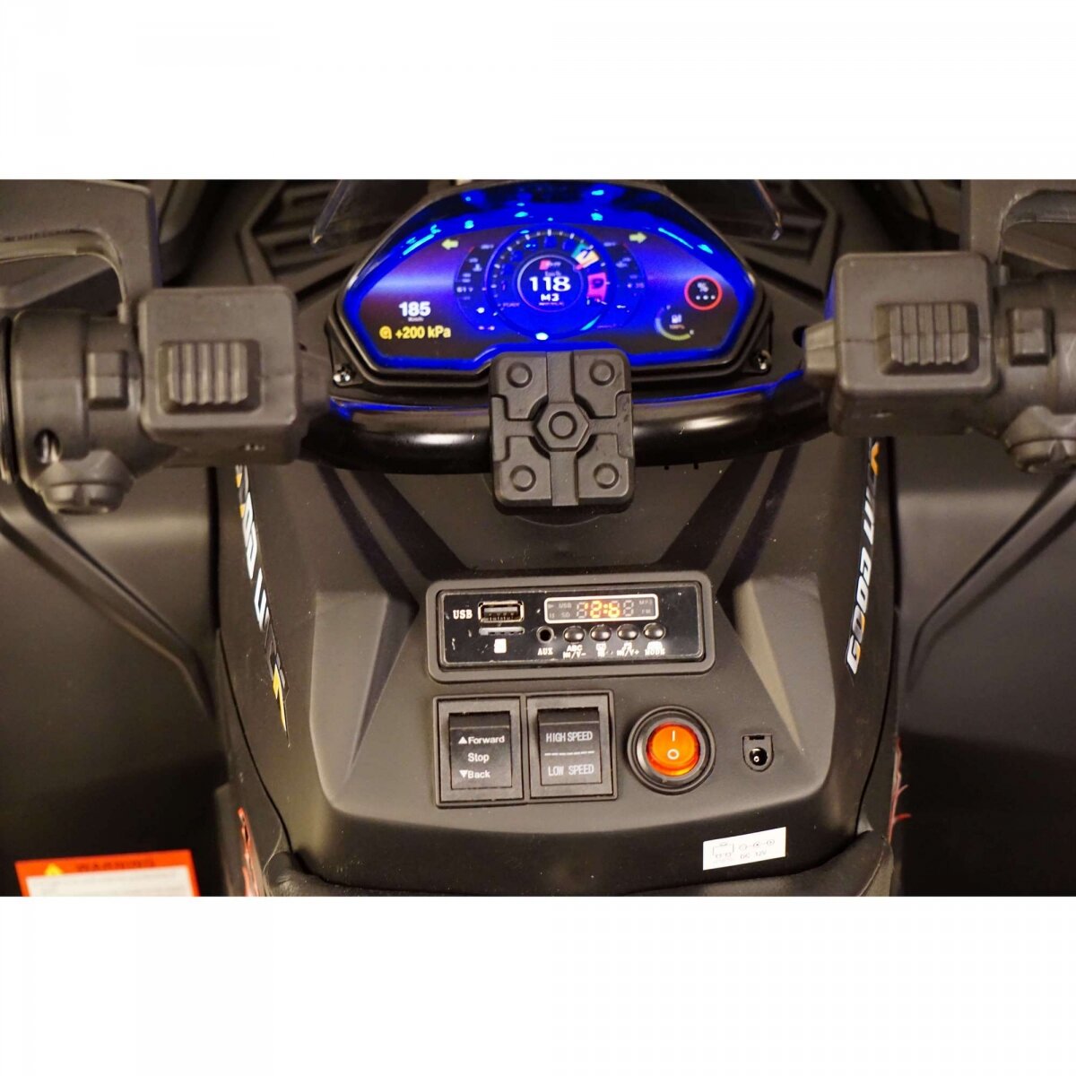 Лучшие цены. Двигатель включается кнопкой. Данная модель оснащена двумя двигателями мощностью 45W. Их питает энергоемкий аккумулятор 12V/10Аh. Заряда хватит на полноценную прогулку на свежем воздухе. Передние и задние фары со встроенными светодиодами светятся в темноте. Ребенок будет хорошо видеть окрестности, и сам будет виден издалека. Квадроцикл развивает достаточно безопасную скорость до 6 км/ч и подойдет для юных автолюбителей 2-6 лет. В дороге водителя развлекут встроенные заводские мелодии. Магазины в вашем городе.