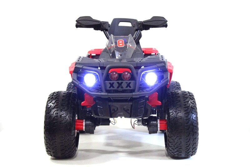 Лучшие цены. Для запуска такой мощной машины нужно нажать кнопку на панели. Сиденье удобное-кожаное. Управлять им может только ребенок с помощью педали. Скорость езды вперед возможно и высокая, и низкая до 6 км/ч и назад, пульта дистанционного управления нет. Детский полноприводный квадроцикл RiverToys K111KK - интересный микс мотоцикла и внедорожника. Он предназначен для поездок по бездорожью, но опасность только в том, что это открытое транспортное средство, а надежные амортизаторы задние и передние делают свое дело. Магазины в вашем городе.