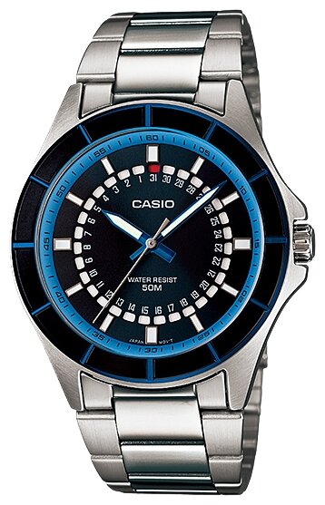 Лучшие цены. Мужские наручные часы Casio MTF-118D-2A , где батарейка запускает механизм в действие. Корпус стальной с синим циферблатом и минеральным стеклом, защищающим циферблат от ударов и повреждений, браслет стальной. Модель Casio MTF-118D-2A обладает степенью влагостойкости 50 м (5 АТМ), где допустимо кратковременное погружение в воду, для плавания рассмотрите варианты от 100 м (10 АТМ). Магазины в вашем городе.