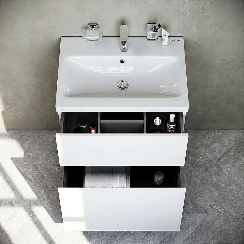Тумба под раковину напольная AM.PM GEM M90FSX06022WG32, 60см, 2 ящика, белый глянец, регулировка ящиков, на ножках, под раковину, тумба под ванну с раковиной, система открывания push-to-open, эмалевое покрытие, Германия