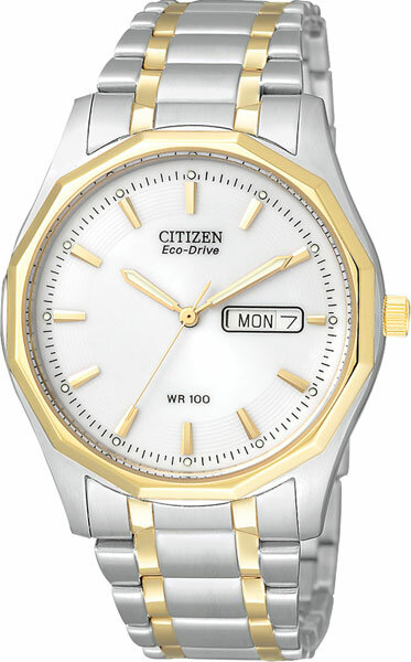 Лучшие цены. Мужские кварцевые часы с приводом Eco-Drive. Заряжаются от любого источника освещения. Запас энергии до 180 дней. Функция индикации заряда (EOL). Центральные часовая, минутная и секундная стрелки. Календарь: число, день недели. Круглый корпус выполнен из нержавеющей стали. Диаметр корпуса составляет 37 мм. Браслет из нержавеющей стали, стандартная застежка. Минеральное ударопрочное стекло, устойчивое к мелким механическим повреждениям. Водозащита WR100 (подходит для плавания). Магазины в вашем городе.