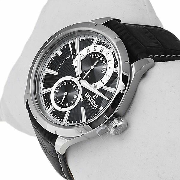 Лучшие цены. Мужские кварцевые часы Festina F16573/3 на черном кожаном ремешке с белой строчкой. Это одна из самых популярных моделей испанского бренда Фестина. Корпус диаметром 45 мм выполнен из высокопрочной стали. Эта модель мультифункциональна - помимо стандартных 3х стрелок и 2х стрелочного ретроградного индикатора даты присутствует и 24х часовой индикатор времени суток. RETRO Браслет/Ремень: черный из кожи теленка Диаметр корпуса: 44,9 Корпус: нерж. Магазины в вашем городе.