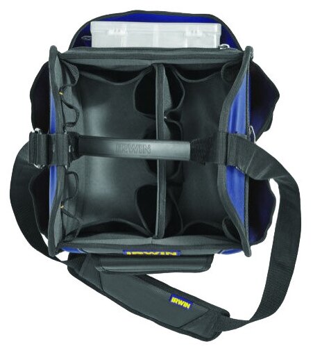 Лучшие цены. Сумка электрика Irwin Defender T10M 2017821 предназначен для переноски и хранения инструментов и принадлежностей. Для организации содержимого предусмотрена система карманов - 12 внешних и 20 внутренних карманов; Помимо этого есть пять внешних слотов, пластиковый кейс для расходных материалов и клипса для размещения предметов быстрого доступа; Наплечный ремень и ручка с резиновой накладкой; Высокопрочный материал 1680d устойчив к износу и воде; Для дополнительной защиты на дне предусмотрены резиновые ножки. Магазины в вашем городе.