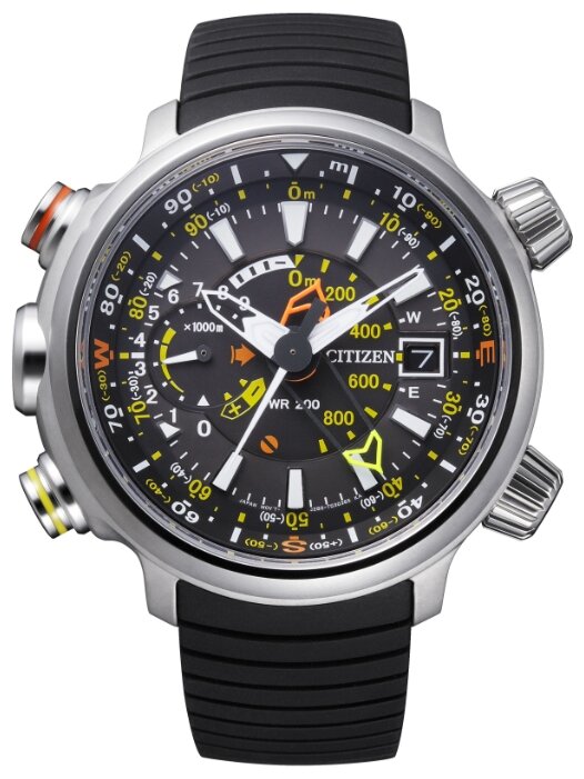 Лучшие цены. Новые часы Citizen могут похвастаться нужными для альпинистов функциями - электронным компасом и высотомером. Promaster. Система Eco-Drive не требующая замены батарейки. Питание от солнечной энергии, запас энергии на 330 дней. Электронный компас. Высотомер с возможностью вывода результатов в единицах высоты над уровнем моря (от -300 до 10000м). Функция индикации заряда (EOL). Указатель запаса хода. Завинчивающиеся заводная головка с защитой и задняя крышка. Магазины в вашем городе.