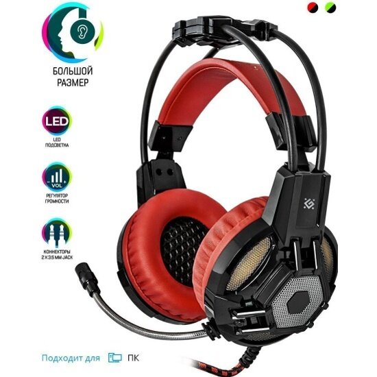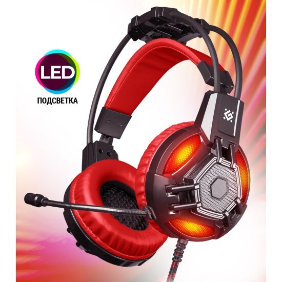 Гарнитура Defender Lester игровая красный + черный кабель 22 м 64541