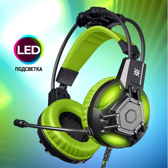 Гарнитура Defender Lester игровая черный + зеленый кабель 22 м 64543