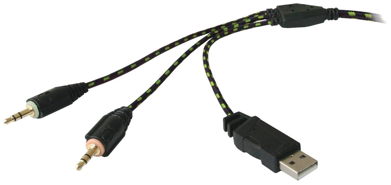 Гарнитура Defender Lester игровая черный + зеленый кабель 22 м 64543