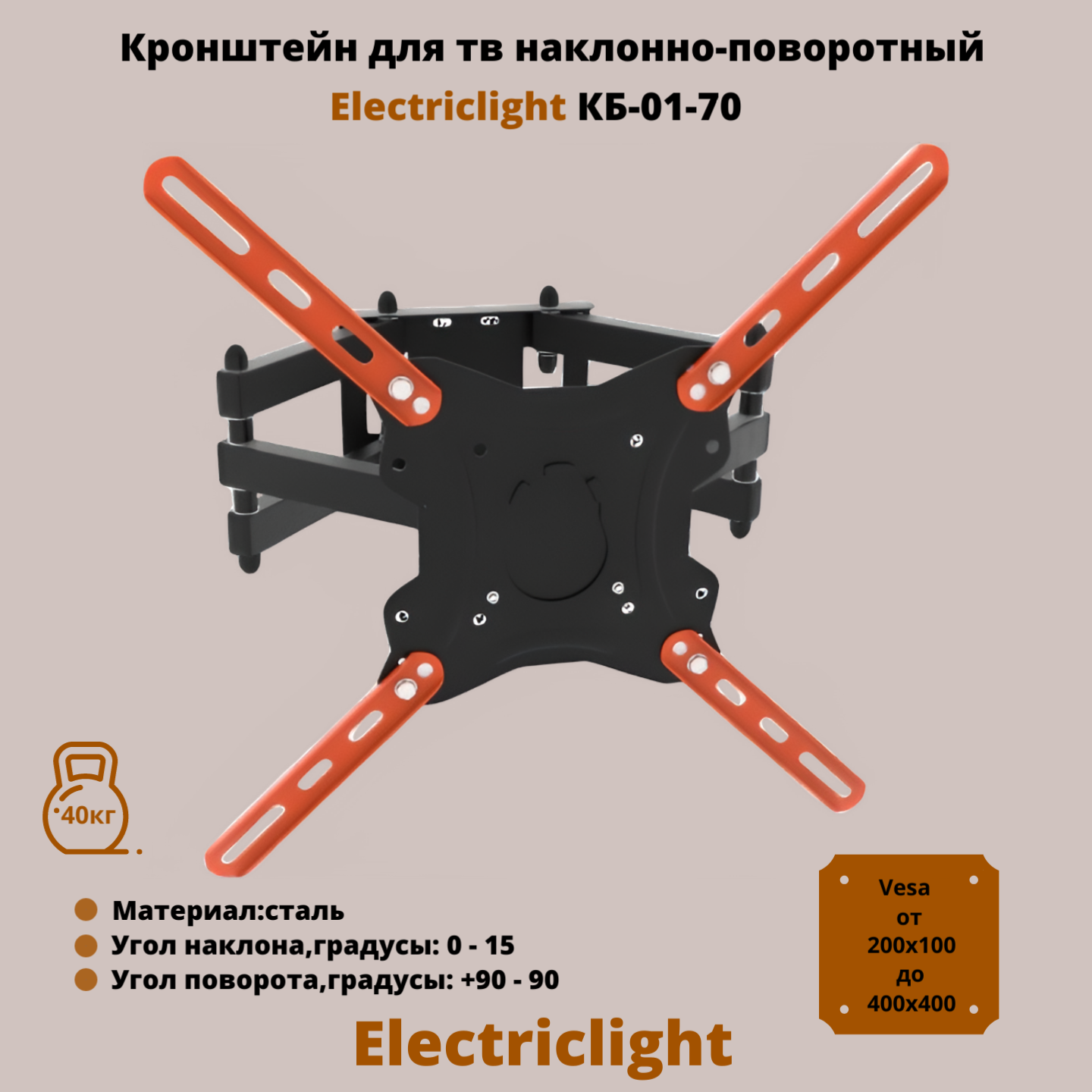 Подставка/крепление Кронштейн для телевизора на стену наклонно-поворотный с диагональю 32"-60" Electriclight КБ-01-70,черный