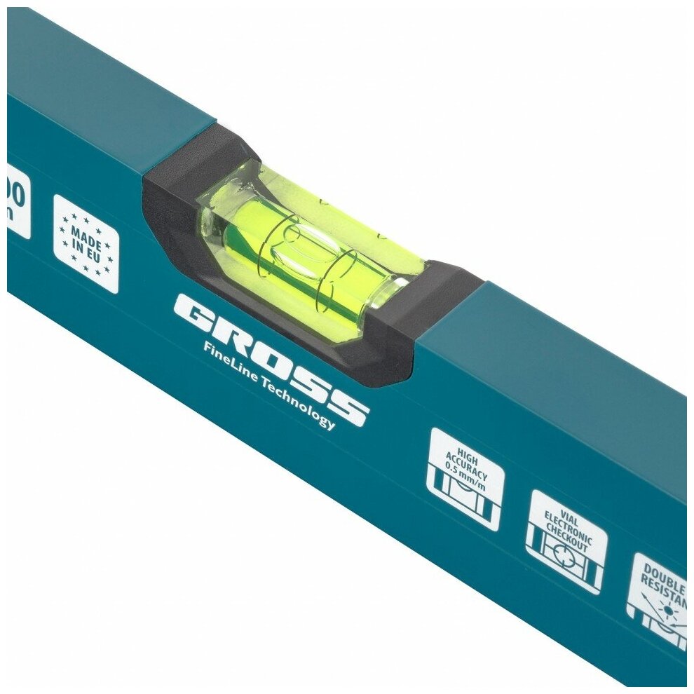 Лучшие цены. • Уровень алюминиевый торговой марки GROSS предназначен для выравнивания поверхности по горизонтали и вертикали. • При производстве уровня применяется электронный контроль точности. • Корпус уровня изготовлен из алюминиевого сплава 6063. • Точность 0,5 мм/м. • Изготовлено в Европе. Магазины в вашем городе.