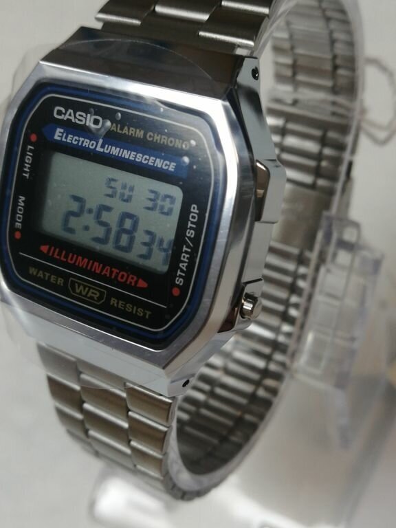 A168WEM-2E Casio наручные часы кварцевые WR30 (3 атм) мужские, женские серебряный, голубой секундомер будильник отображение числа, отображение дня недели, отображение месяца подсветка дисплея акриловое стекло 6 471 ₽ Подробнее