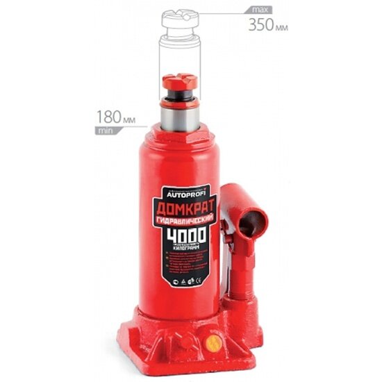 AUTOPROFI DG-04K Домкрат бутылочный AUTOPROFI, гидравлический, 4 тонны, защита от перегруза, высота подъёма 180 - 350 мм., в кейсе