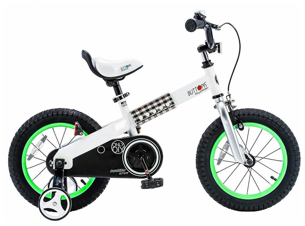 Детский велосипед Детский велосипед Royal Baby RB14-15 Buttons 14 Steel белый/зеленый (требует финальной сборки)