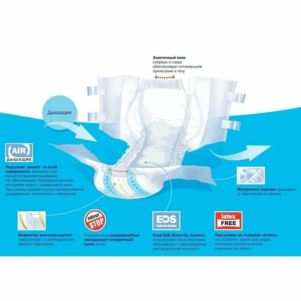 Подгузники (памперсы) для взрослых Super Seni Medium (средние) (обхват 75-110 см), 30 шт