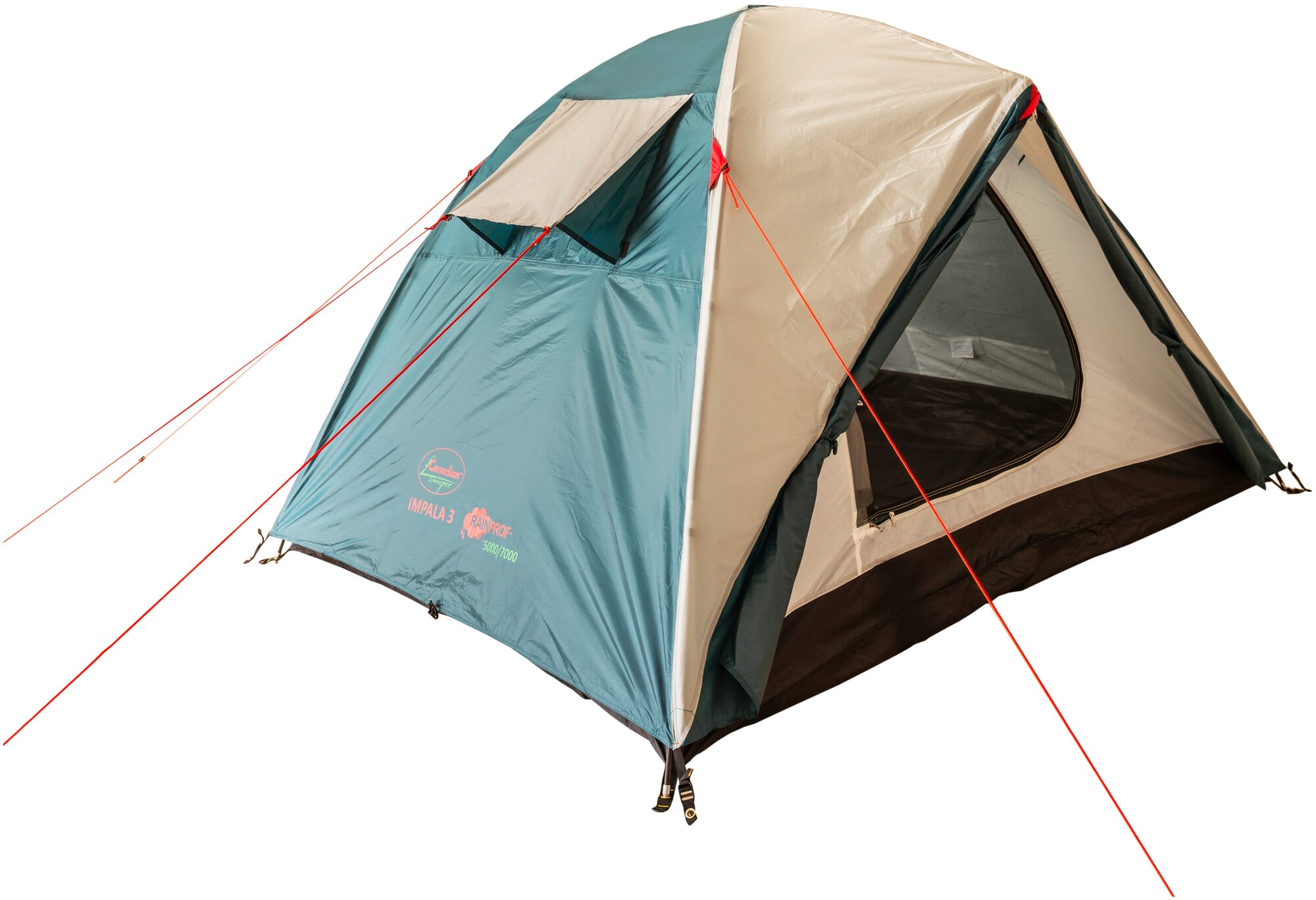 Лучшие цены. Impala 2 - универсальная палатка для туристических походов. Имеет минимальный вес среди всех туристических палаток со стеклопластиковыми дугами, при этом обеспечивая оптимальное пространство пользователям. Два входа и большие вентиляционные окна обеспечат комфорт даже в летний зной. Палатка имеет два больших тамбура для хранения туристической экипировки. Окна и входы в палатку защищены противомоскитными сетками. Материал тента: полиэстер. Материал дна: полиэстер. Материал внутренней части: нейлон. Магазины в вашем городе.