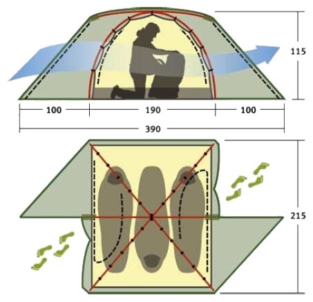 | Дополнительно | москитная сетка / петля для фонаря / внутренние карманы / полка для мелких предметов |