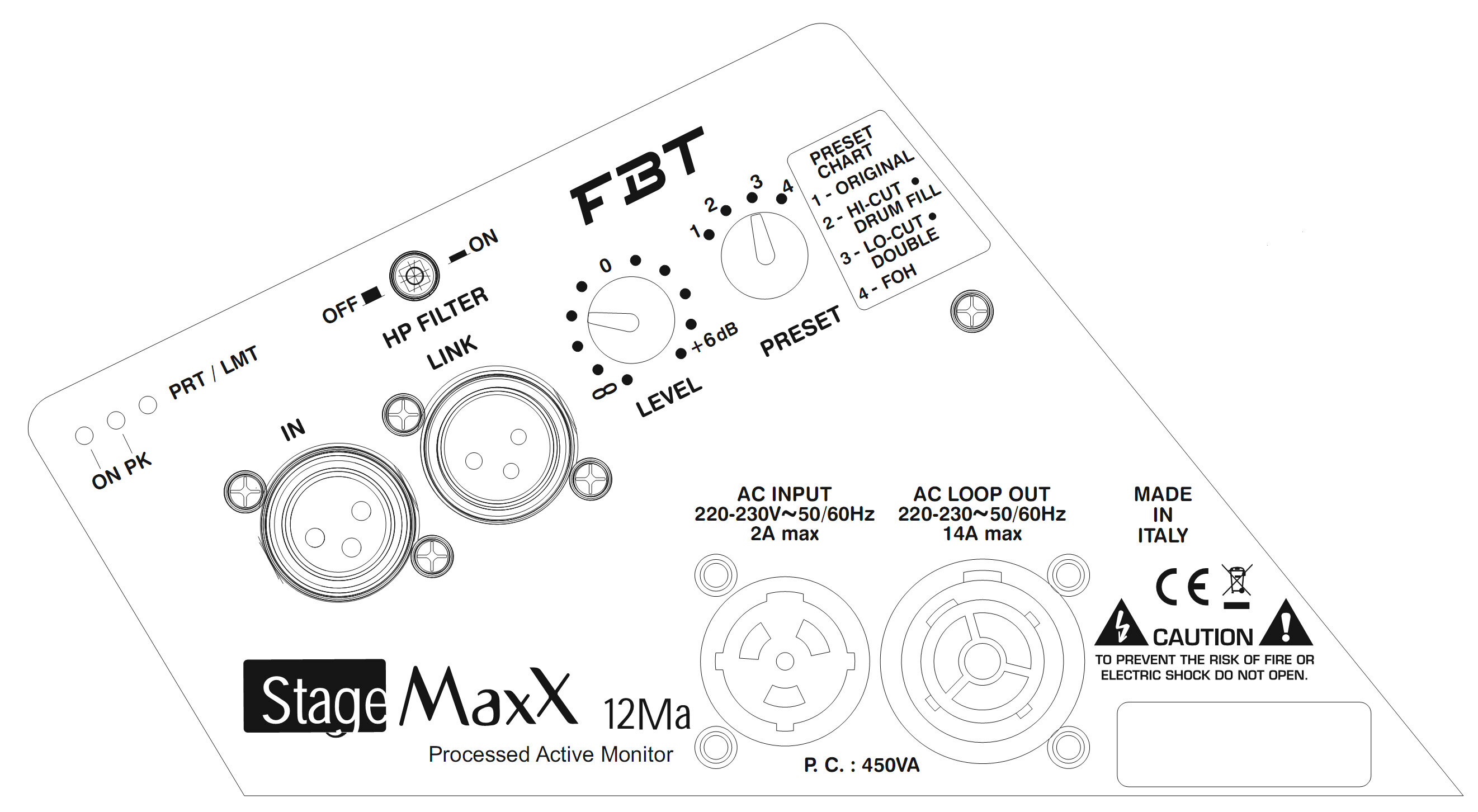 FBT STAGEMAXX 12MA - Активный монитор 400 Вт НЧ RMS+100Вт ВЧ RMS, DSP процессор с 4 пресетами