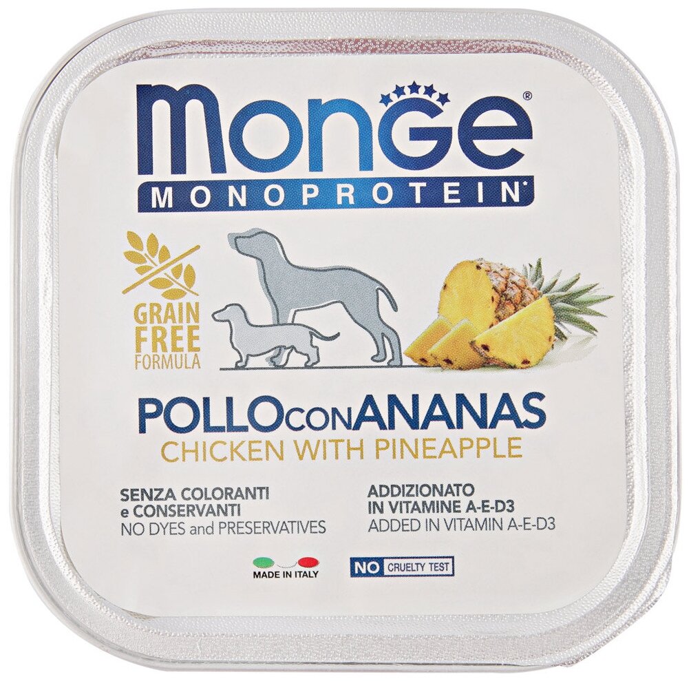 Лучшие цены. Monge Dog Monoprotein Fruits консервы для собак паштет из курицы с ананасом. Полноценный рацион для взрослых собак. Ароматный мясной паштет изготовлен из свежего мяса курицы с добавлением косочков сочного ананаса. Магазины в вашем городе.