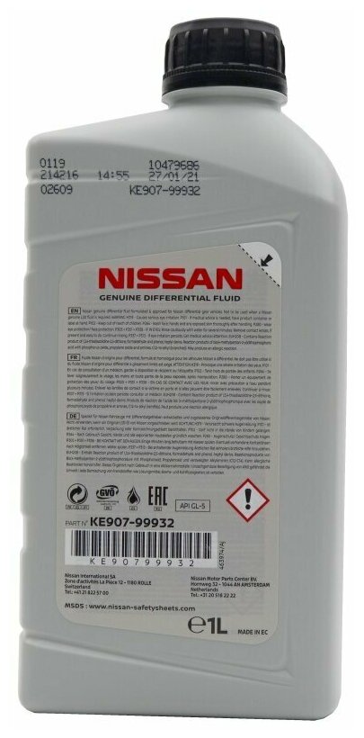 Лучшие цены. NISSAN KE90799932R Масло трансмиссионное для дифференциала 80W90 GL-5 1л. Магазины в вашем городе.