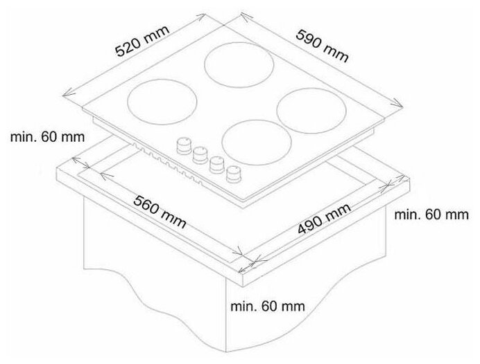 | Размеры для встраивания (ШхГ) | 560x490 мм |