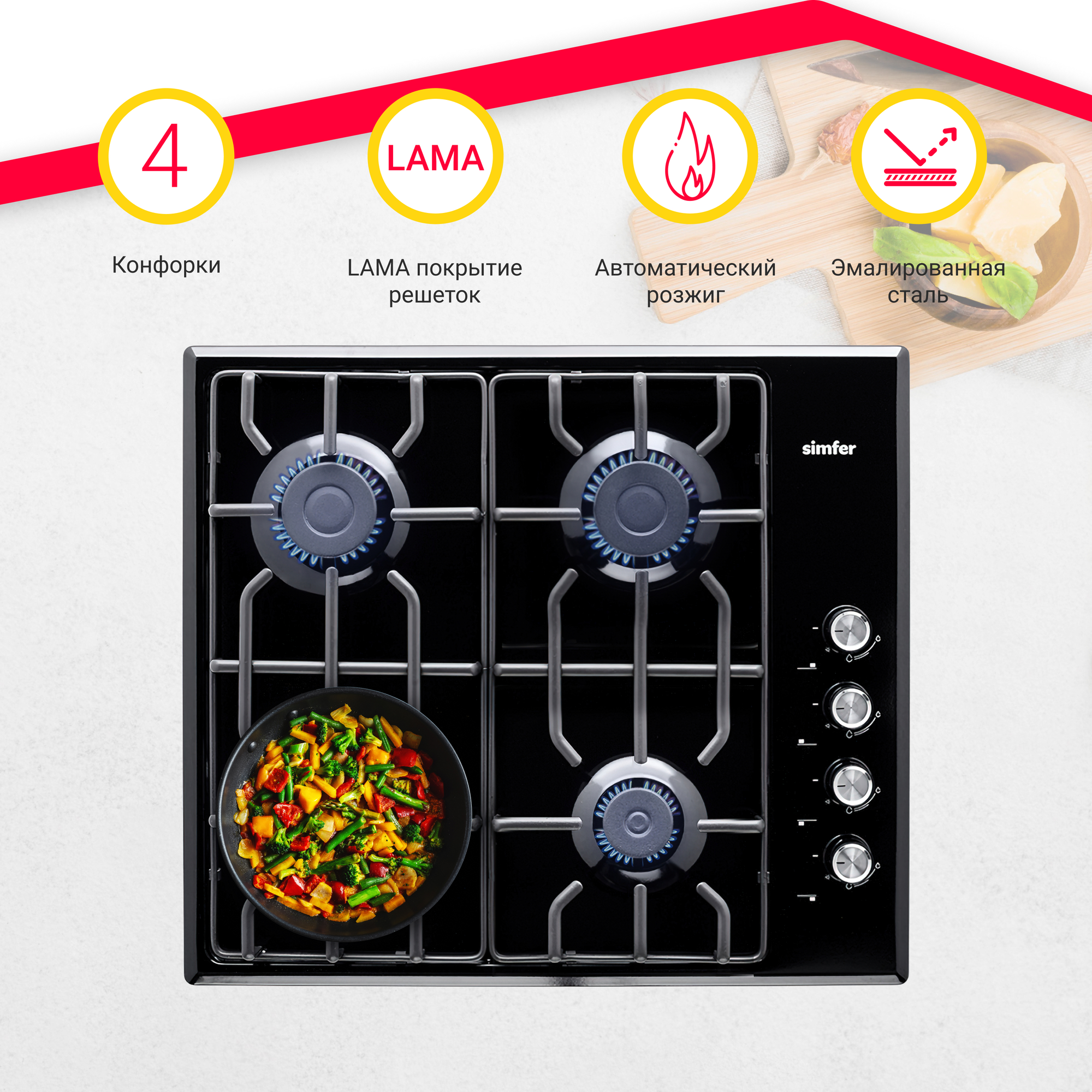 Плиты Газовая варочная панель Simfer H60Q40B471, решётки LAMA, автоподжиг