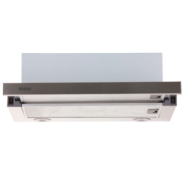 Лучшие цены. Встраиваемая вытяжка Haier HVX-T671X быстро очистит кухню от чада и неприятных запахов. Она работает в режиме отвода воздуха, а после покупки и установки угольных фильтров вам будет доступна рециркуляция. Устройство комплектуется металлическим выдвижным козырьком. Производительность этой модели составляет 700 кубических метров в час. Скорость работы легко регулируется с помощью несложной механической системы управления: вы можете выбрать один из двух вариантов. В корпус встроены две 1-ваттные LED-лампы. Магазины в вашем городе.