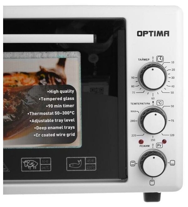 Духовка электрическая OPTIMA OF-36W (36л, таймер, лампа, противень 2шт., решетка, белый, 1300Вт)