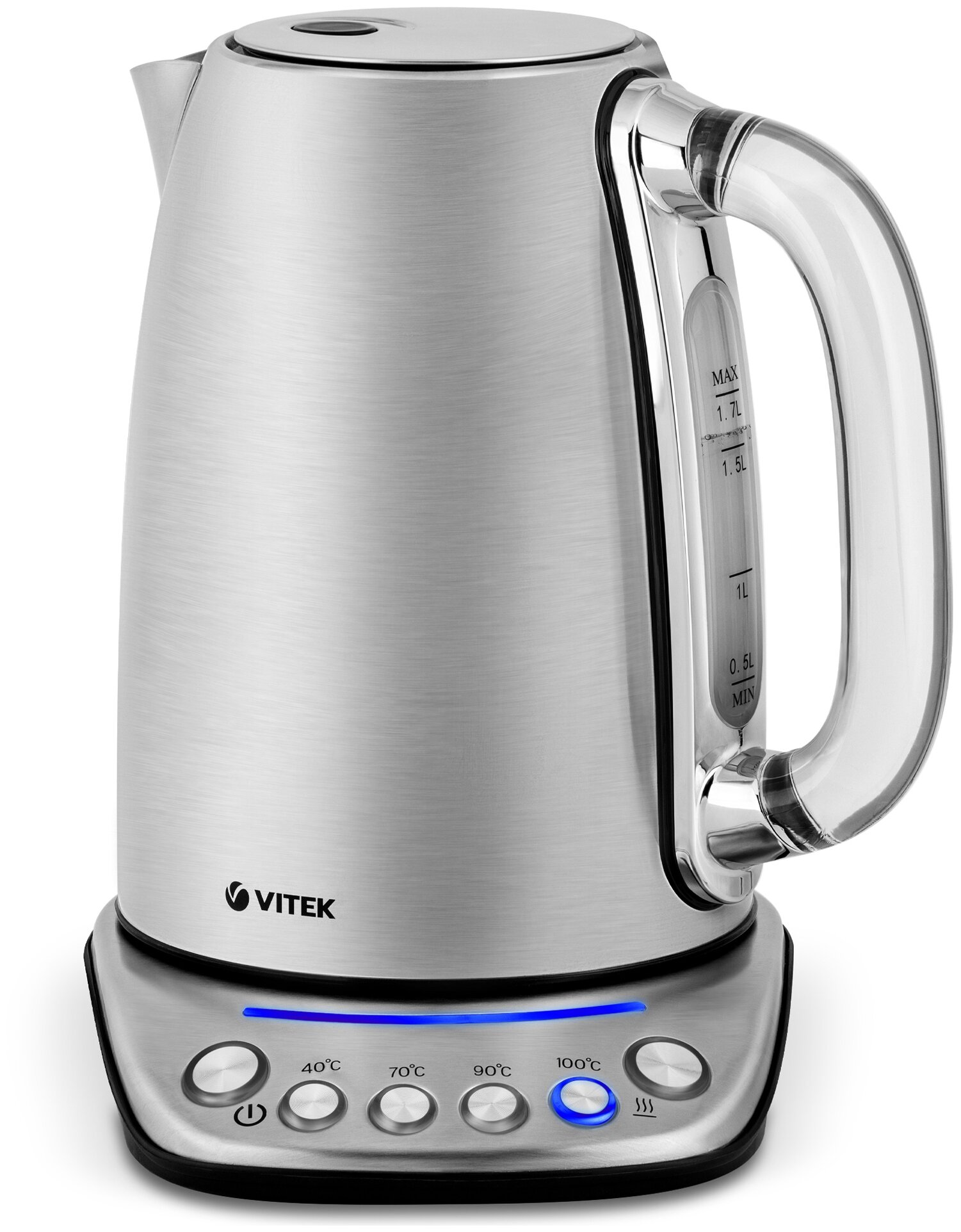 Лучшие цены. Тип - чайник | Объем - 1.7 л | Мощность - 2200 Вт | Тип нагревательного элемента - закрытая спираль | Дополнительные функции - поддержание тепла | Подсветка - есть | Безопасность - отключение при снятии с подставки, блокировка включения без воды | Особенности - вращение на 360 градусов, индикатор уровня воды, фильтр, отсек для хранения шнура | Возможность выбора температуры - есть | Минимальная температура нагрева - 40 °C | Количество температурных режимов - 4 | Материал корпуса - металл | Длина сетевого. Магазины в вашем городе.