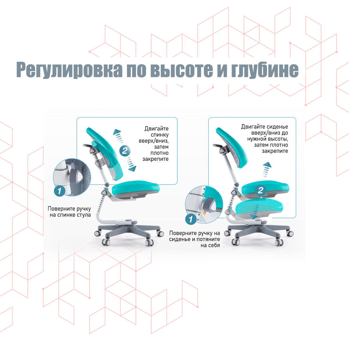 | Регулировки | высоты спинкивысоты сиденьяглубины сиденья |