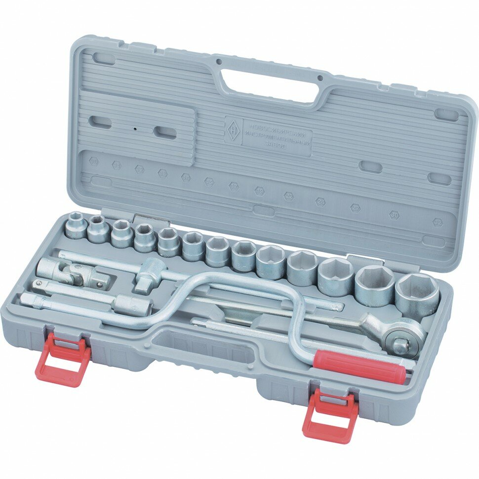 Набор торцовых головок НИЗ Шоферский инструмент №3, 1/2, сталь 40Х, в пластиковом кейсе, 19 предметов 2761-30
