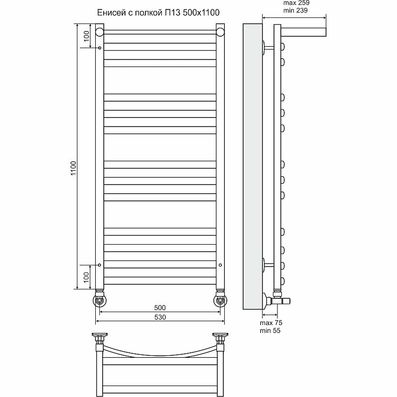 Водяной полотенцесушитель TERMINUS Енисей с полкой П13 530х1100