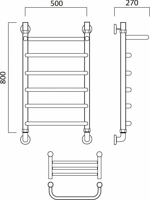Полотенцесушитель водяной Акванерж Скоба с полкой 800х500 мм, 5 перекладин, универсальное подключение.