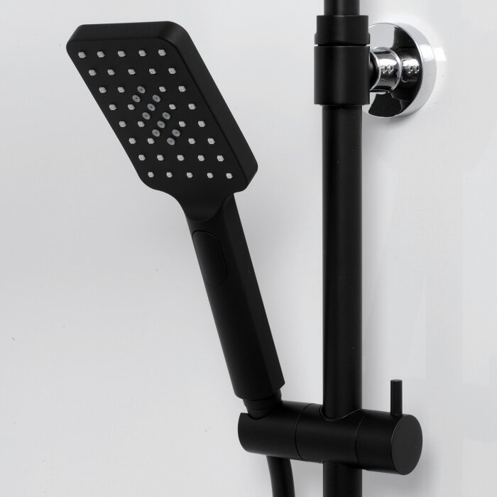 Лучшие цены. Цвет: черный Комплектация: душевая насадка 260x188 мм, 117 форсунок, ABS-пластик стойка для душа, Ø 24 мм регулируемая по высоте лейка 3-функциональная с системой защиты от известковых отложений шланг ПВХ 1500 мм, подключение к лейке термостатический смеситель термостатический картридж Vernet (Франция) встроенный пластиковый аэратор Neoperl HONEYCOMB (Германия) с регулируемым углом наклона струи обратный клапан Neoperl (Германия). Магазины в вашем городе.