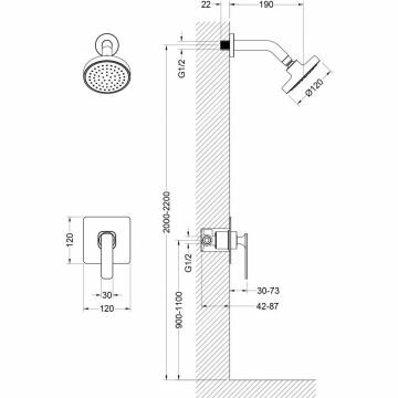 | Комплектация | верхний душ (АБС-пластик) / смеситель(латунь) / настенный кронштейн |