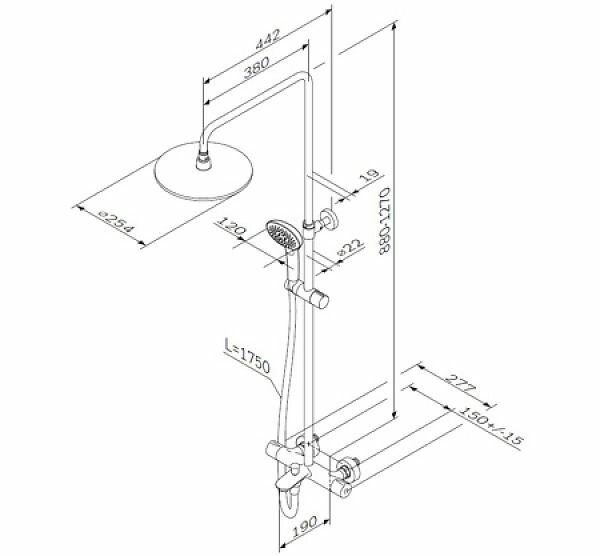 | Комплектация | ручной душ / верхний душ / смеситель / стойка / штанга / душевой шланг / крепление ручного душа |