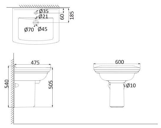 Creo Ceramique Orleans Раковина на одной ножке 600х475х870 OR3000+OR3010 00040430 .