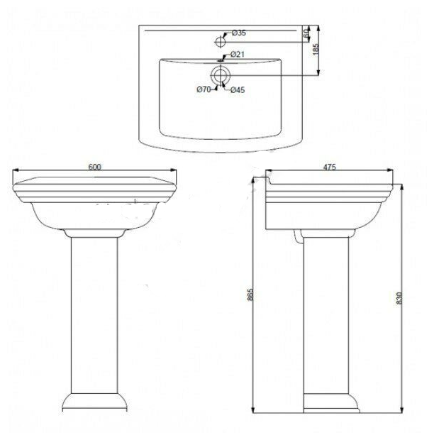 Раковина на одной декоративной ножке Creo Ceramique ORLEANS OR3000+OR3010