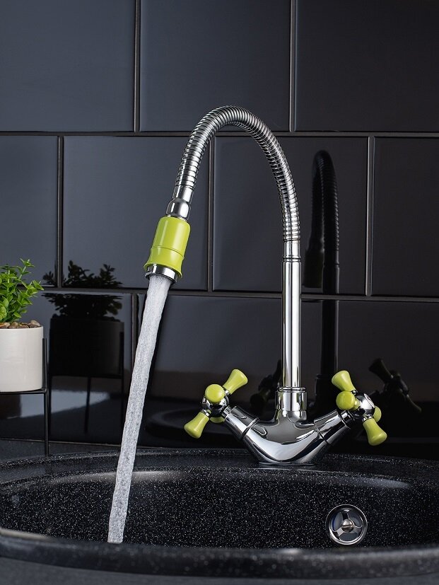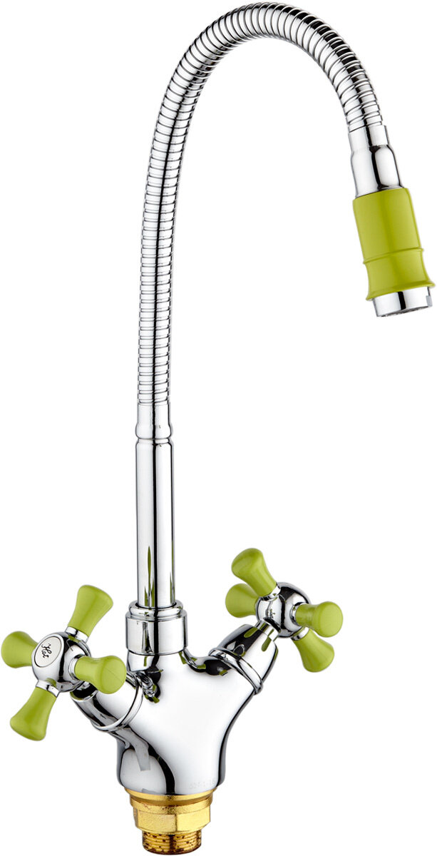 Смеситель для кухни, РМС, гибк излив, с кран-буксой, зел, SL92GR-279F