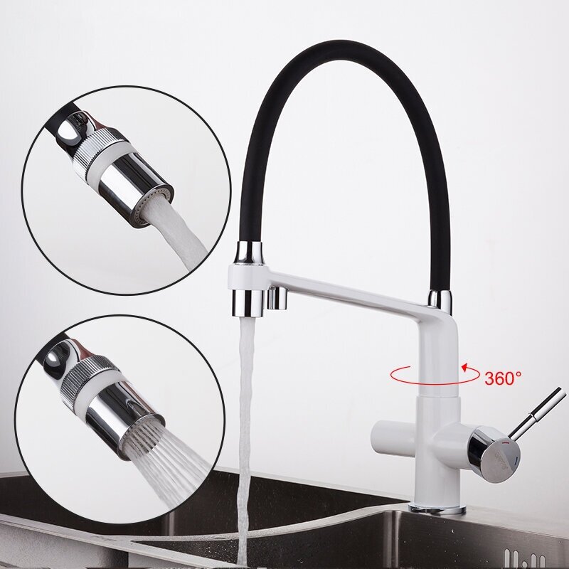 Смеситель для кухни, Gappo, с картриджем, гибкий излив, с подключением к фильтру, белый, G4398-9
