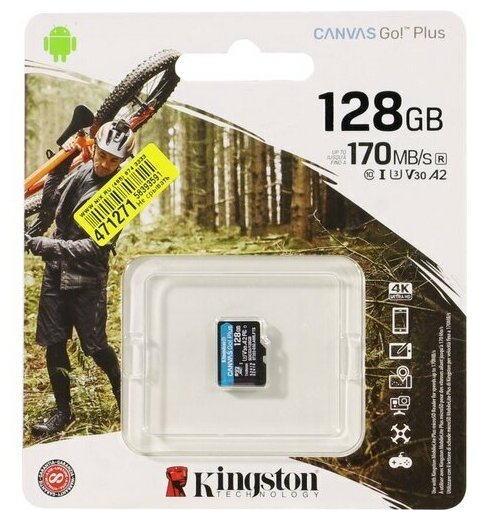 Карта памяти Kingston CANVAS Go! Plus - SDCG3/128GB - microSDXC UHS-I, U3, V30, A2 - 170/90МБ/с без адаптера