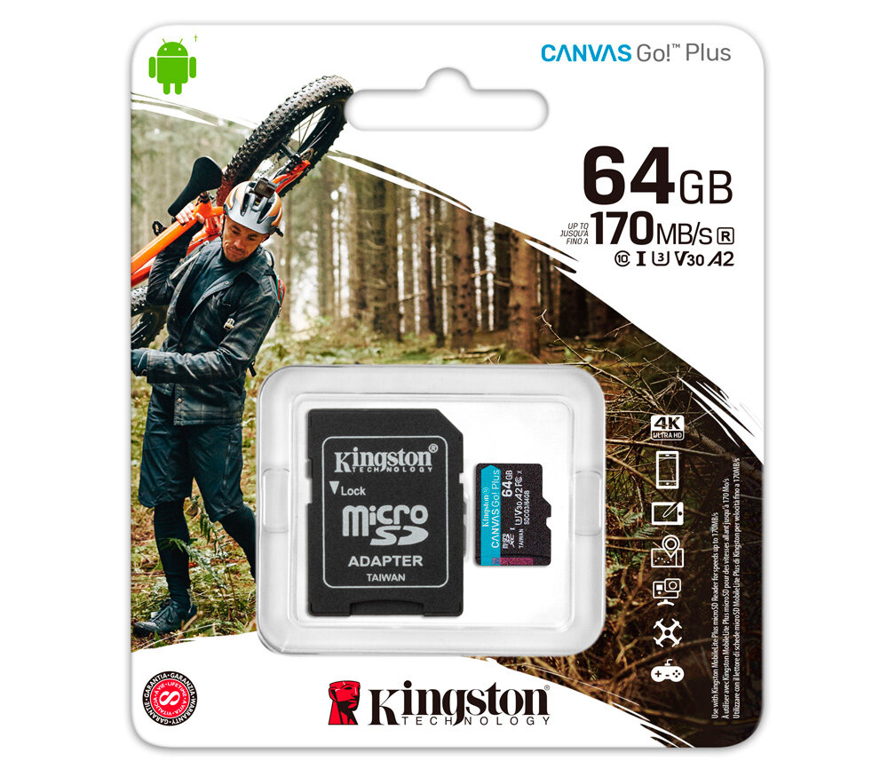 Лучшие цены. Canvas Go! от Kingston Plus microSD — для искателей приключений, которые всегда в пути, в поисках идеального момента для съемки. С превосходной скоростью передачи до 170МБ/с1, Canvas Go! Карта Plus microSD ускоряет ваш рабочий процесс и повышает эффективность, чтобы в следующем приключении у вас было больше времени на творчество. Скоростные характеристики U3 и V30 позволяют снимать великолепные видео в формате 4K Ultra HD, не беспокоясь о снижении скорости и пропущенных кадрах, или снимать фотографии в. Магазины в вашем городе.