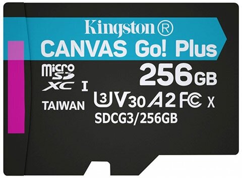 Карта памяти Kingston microSDXC Canvas Go Plus, 256 Гб, UHS-I, U3, V30, A2, без адаптера