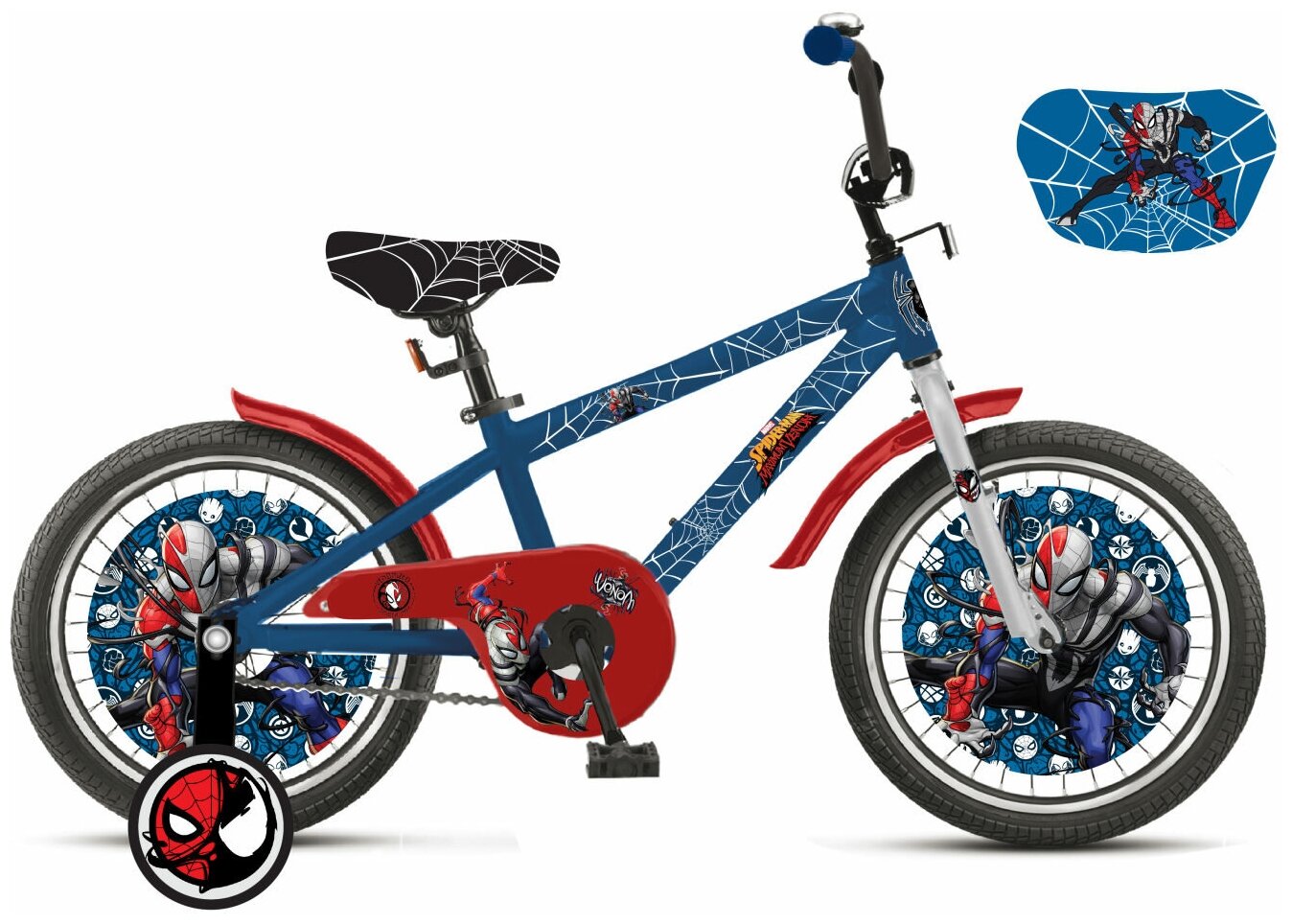 Лучшие цены. Если Ваш озорник обожает комиксы и мультфильмы, героем которых является Человек-Паук, то при выборе двухколесного велосипеда он не сможет пройти мимо стильной модели от компании Navigator, с синей рамой и черным сиденьем украшенным паутиной, декоративными дисками и защитой цепи с изображением любимого персонажа. Особенности: Детский двухколесный велосипед понравится поклонникам популярного героя Marvel - Человека-Паука. Магазины в вашем городе.