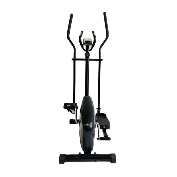 Лучшие цены. Среднегабаритный эллиптический тренажер для домашнего использования. Тренажер с высокоскоростным маховиком и магнитной системой нагружения. Механическая регулировка нагрузки, 8 фиксируемых положений нагрузки с помощью удобной ручки на стойке тренажера. На руле расположены 2 датчика пульса с отображением показаний на дисплее консоли. Встроенные в передней части колеса позволят переместить тренажер по комнате после тренировки. Магазины в вашем городе.