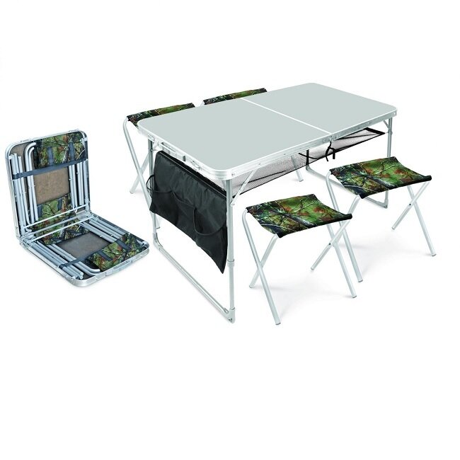 Набор туристический ССТ-К3 5 столешница кофе с молоком (стол влагостойкий с полкой и карманом + 4 складных стула сафари)