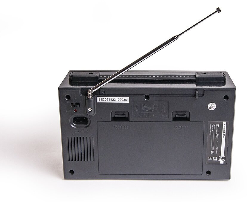 Радиоприемник БЗРП РП-306, УКВ/СВ/КВ, 4xR20, 220V, USB,SD,стерео, ручка, 22x13.3x13.5 см.