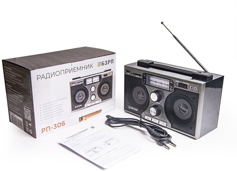 Лучшие цены. Радиоприемник с аналоговым тюнером со стильным дизайном, БЗРП РП-306 хорошо зарекомендовал себя на рынке среди множества моделей. БЗРП РП-306 достаточно крупный радиоприемник, для удобства в переноске имеется ручка. Корпус радиоприемника БЗРП РП-306 выполнен в металлическом стиле. Особенностями данного радиоприемника являются: наличие универсального питания- от сети и от батареек R20*4шт. Магазины в вашем городе.