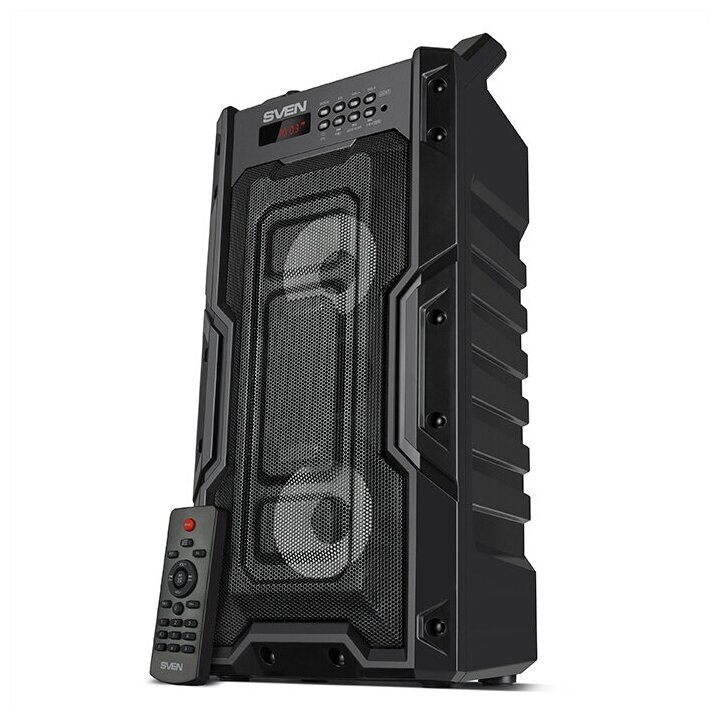 Колонка портативная беспроводная bluetooth SVEN PS-435, переносная с радио и ручкой для переноски / Колонка блютуз музыкальная акустическая с подсветкой / 20 Вт / TWS / USB / microSD / LED-дисплей / пульт / вход для караоке микрофона