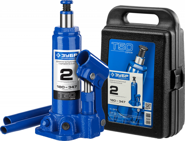Домкрат гидравлический бутылочный T50, 2т, 180-347мм, в кейсе, ЗУБР Профессионал 43060-2-K 43060-2-K_z01