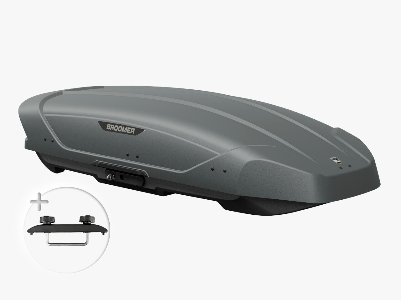 Лучшие цены. Бокс на крышу Broomer Venture L (430л) Серый Текстурный Аэродинамический бокс в современном стиле с острыми и агрессивными очертаниями, подходящий к любому классу автомобиля: от внедорожника до седана Данная модель имеет два легких рассекателя, подчёркивающих спортивный дизайн и агрессивный внешний вид. Задняя часть крышки имеет выраженный обратный угол, что позволяет без помех открывать крышку багажника на любом автомобиле. Магазины в вашем городе.