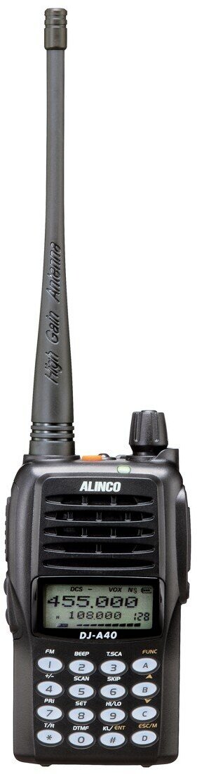 Лучшие цены. Японский производитель портативных станций ALINCO продолжает выпускать новую серию раций с индексом "A" и представляет Вашему вниманию новую модификацию высокочастотного UHF диапазона модель ALINCO DJ-A40. Профессиональная рация Алинко DJ-A40 выдает максимальную мощность до 5 Вт (мощность переключаемая). Трансивер DJ-A 40 обладает 50-ю градациями шумоподавителя, и высокой стабильностью частоты 2.5 ppm. Магазины в вашем городе.